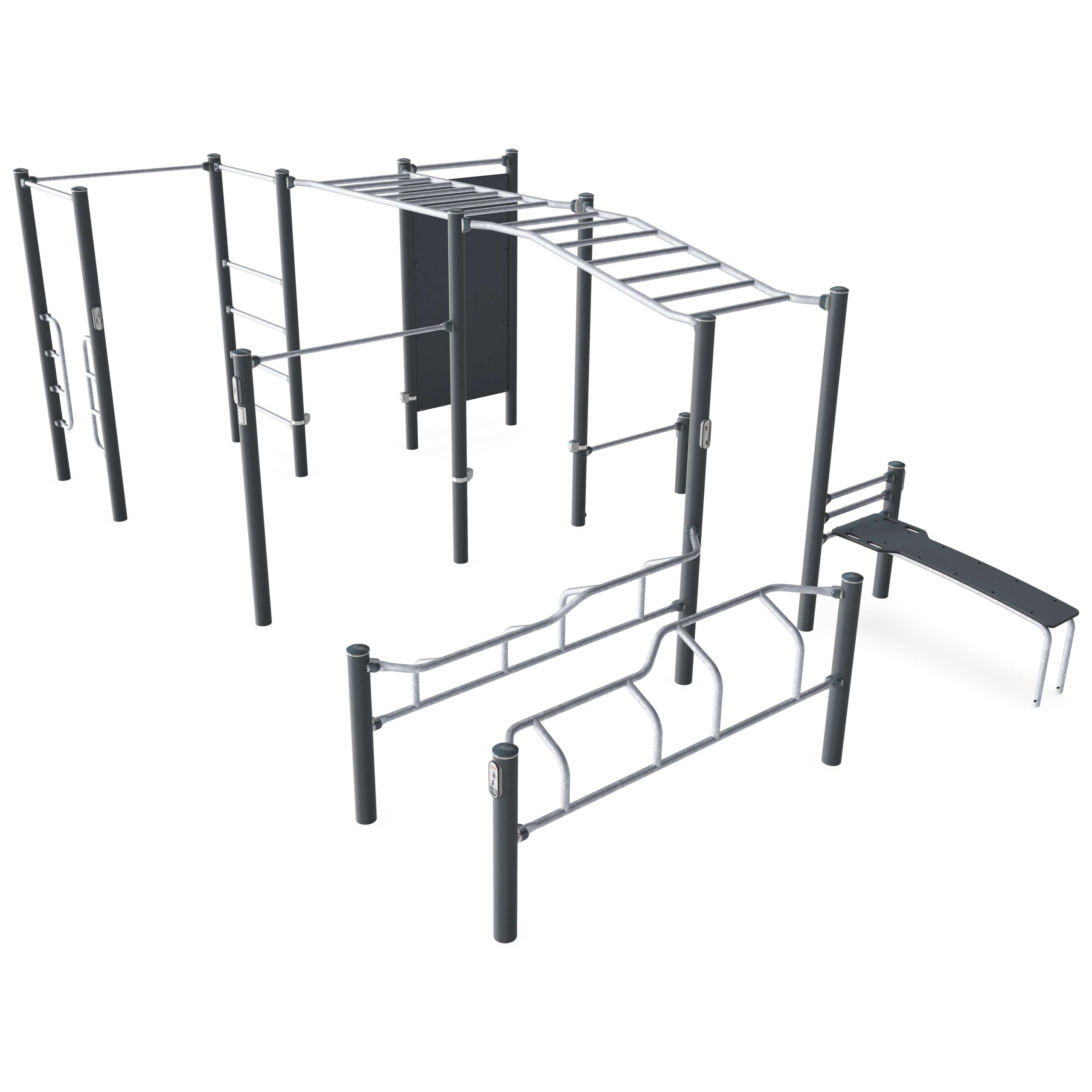 - Anpassbar für verschiedene Fitnesslevel: Die Übungsvariationen und die Möglichkeit zur Körpergewichtssteuerung machen die Station für Einsteiger und Fortgeschrittene gleichermaßen geeignet.