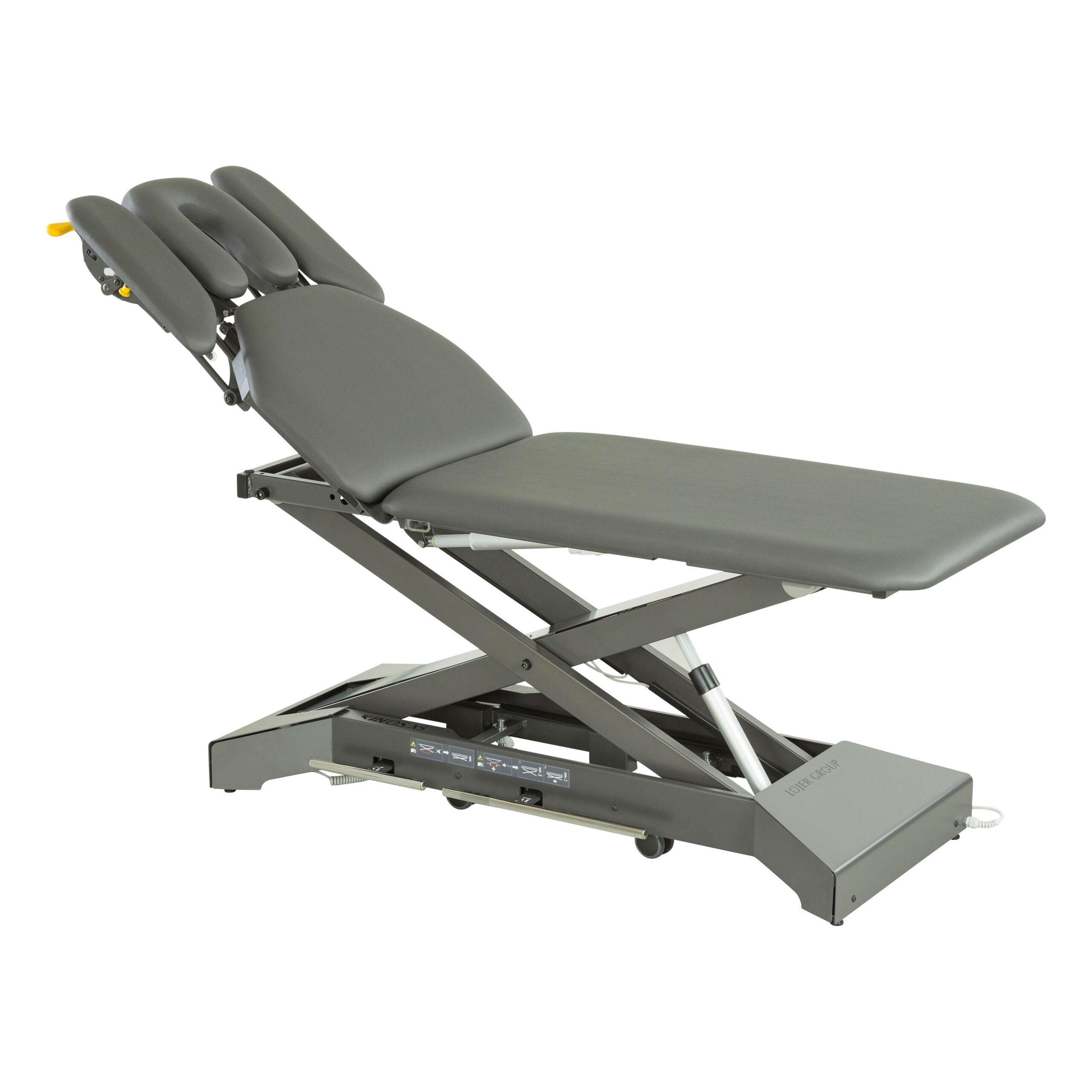 Die Lojer Kinos X5 überzeugt durch ihre durchdachte Technik und die Verwendung hochwertiger Materialien, die eine langlebige und zuverlässige Leistung garantieren. Die elektrische Höhenverstellung ermöglicht ein ermüdungsfreies Arbeiten für den Therapeuten und erleichtert den Transfer des Patienten.