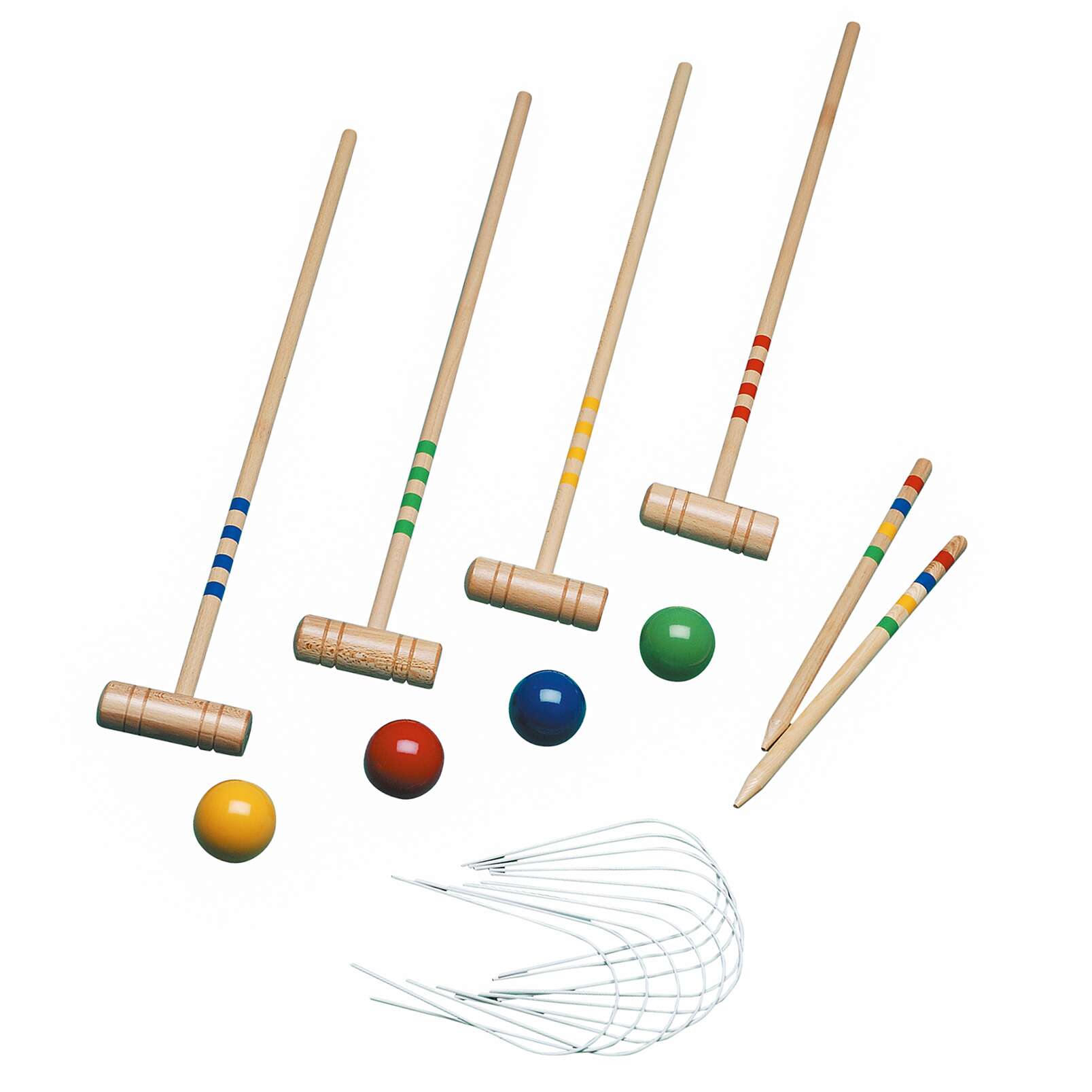 | Inhalt | Komplettes Set für 2-4 Spieler: 4 Kugeln, 4 Hämmer, 10 Tore, 2 Markierungsstäbe. |