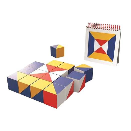 | Design & Funktionalität | Das Set besteht aus einer Vielzahl von Würfeln in unterschiedlichen Farben und mit verschiedenen Markierungen (z.B. einfarbig, geteilt, mit Punkten). Diese Vielfalt ermöglicht das Nachbilden einer breiten Palette von Mustern, von einfachen Farbsequenzen bis hin zu komplexen geometrischen Arrangements. Die Würfel passen perfekt zusammen und ermöglichen stabile Konstruktionen. |
