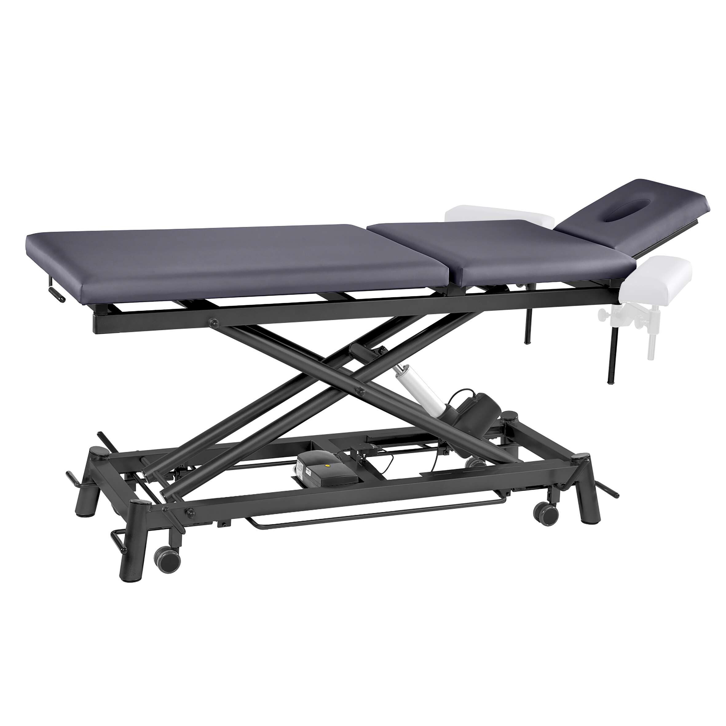 - Elektrische Höhenverstellung: Ermöglicht stufenlose und präzise Anpassung der Liegehöhe für optimale Ergonomie des Behandlers.