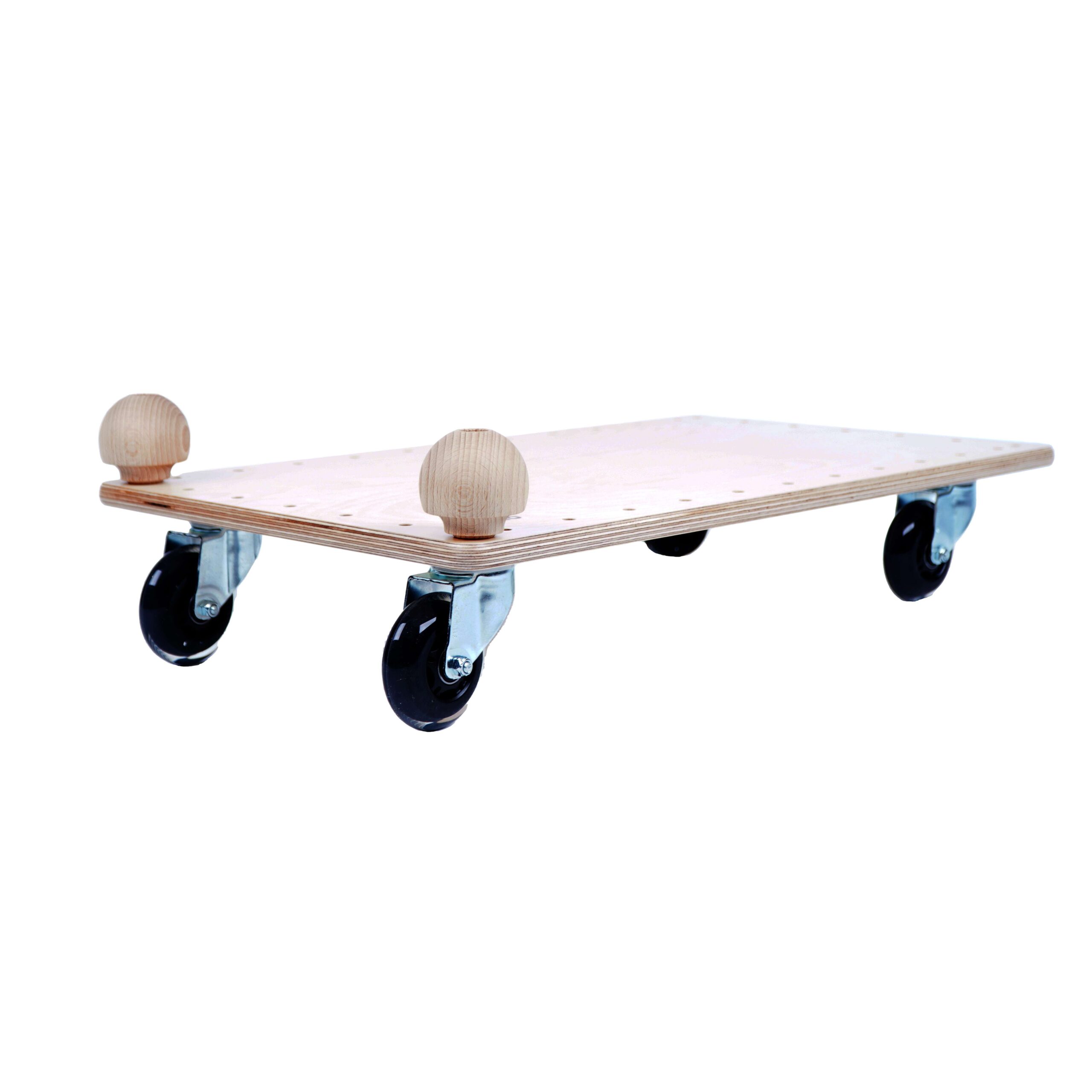 | Pflegehinweise | Oberfläche kann mit einem leicht feuchten Tuch abgewischt werden. Auf aggressive Reinigungsmittel sollte verzichtet werden, um das Holzmaterial zu schonen. Regelmäßige Überprüfung der Rollen und Festhaltekugeln auf festen Sitz. |