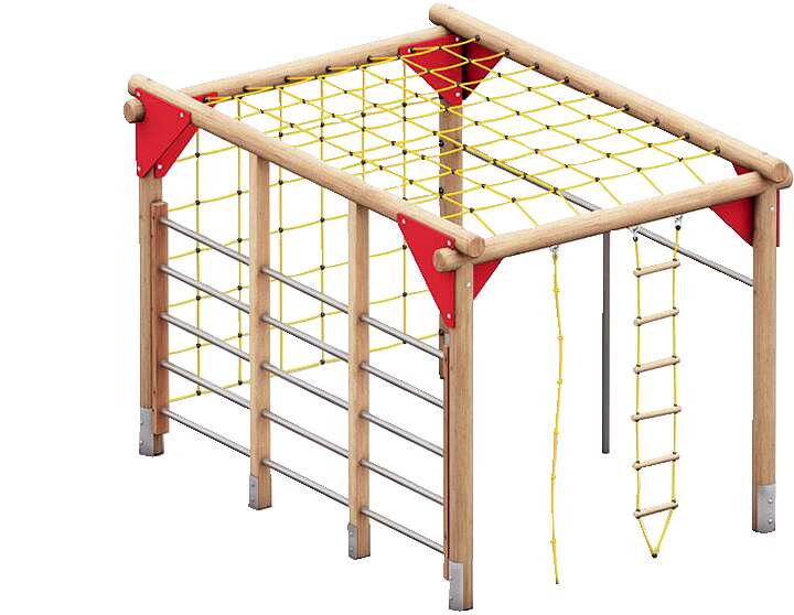 | Sicherheitsmerkmale | Abgerundete Kanten und Ecken zur Vermeidung von Verletzungen. Rutschfeste Sprossen und Trittflächen. Integrierte Sicherheitsgriffe an Aufstiegen. Empfohlene Fallschutzfläche unter dem Gerät zur Stoßabsorption. |