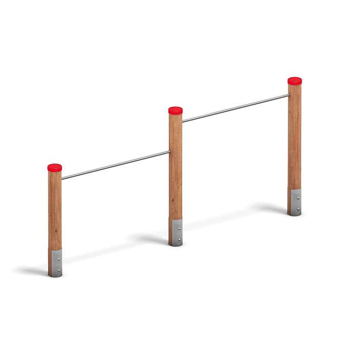 Die Playparc Reckanlage „2-fach“ ist eine Outdoor-Trainingsstation mit zwei Reckstangen in unterschiedlichen Höhen, konzipiert für vielseitige Übungen zur Stärkung von Kraft, Koordination und Körperhaltung im Freien.