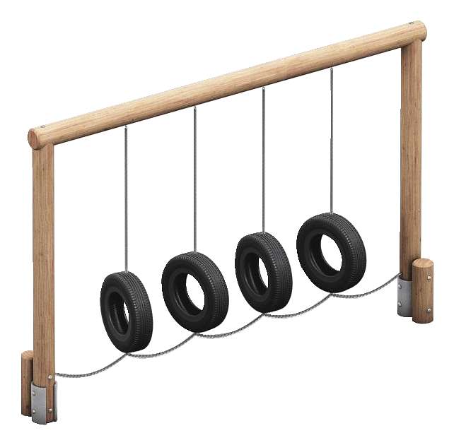 | Materialien | Hochwertige, wetterbeständige und für den Außeneinsatz geeignete Werkstoffe, Fokus auf Nachhaltigkeit und Sicherheit. Verwendung von robustem Holz für tragende Elemente und/oder schlagfesten Kunststoffen für Sitz- und Greifflächen, kombiniert mit rostfreiem Edelstahl für Verbindungen und Aufhängungen. |