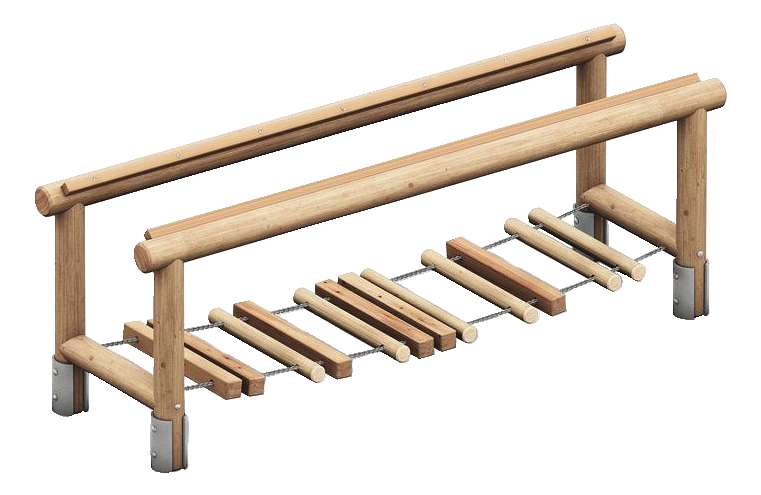 - Modulare Erweiterbarkeit: Als Einzelelement lässt sich die „Indianer-Brücke“ flexibel in bestehende oder geplante Spielanlagen integrieren und erweitern.
