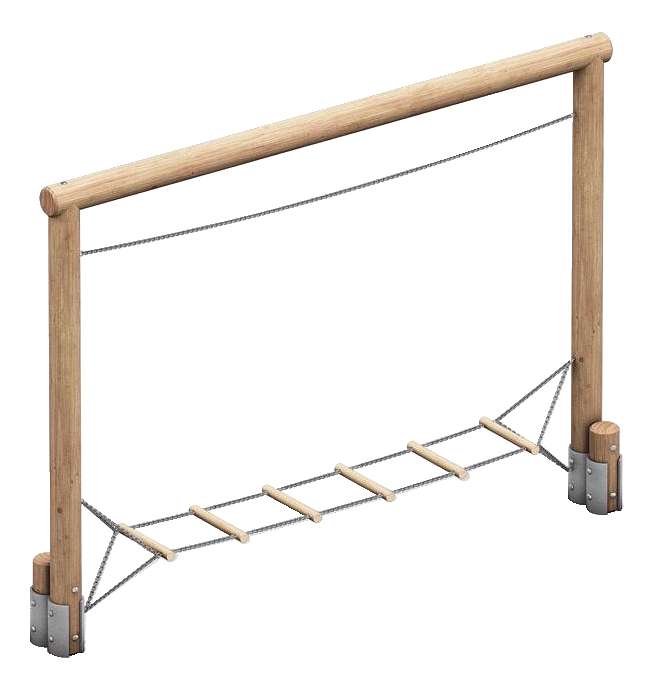 Die Sprossenleiterbrücke ist so konzipiert, dass sie eine sichere Überquerung ermöglicht. Die Sprossen sind gleichmäßig im Abstand angeordnet und bieten eine optimale Trittfläche für Kinder unterschiedlicher Größe. Die stabile Geländerkonstruktion, die integraler Bestandteil des Designs ist, bietet zusätzlichen Halt und Sicherheit während des Kletterns. Das gesamte Element ist so gestaltet, dass es sich nahtlos in bestehende Spielstrukturen integrieren lässt oder als eigenständiges Abenteuerhighlight dient. Die Montage ist einfach und unkompliziert, wobei die mitgelieferte Montageanleitung klare Schritte vorgibt.