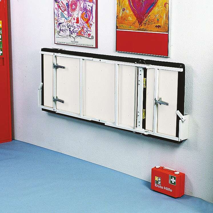 Ein herausragendes Merkmal der Söhngen Wandklappliege ist ihre Fähigkeit, sich bei Nichtgebrauch nahezu unsichtbar an die Wand klappen zu lassen. Dies ermöglicht eine maximale Nutzung des vorhandenen Raumes und schafft eine aufgeräumte und professionelle Umgebung. Sobald die Liege benötigt wird, lässt sie sich mühelos und sicher ausklappen und bietet eine stabile und bequeme Fläche für Ruhephasen.