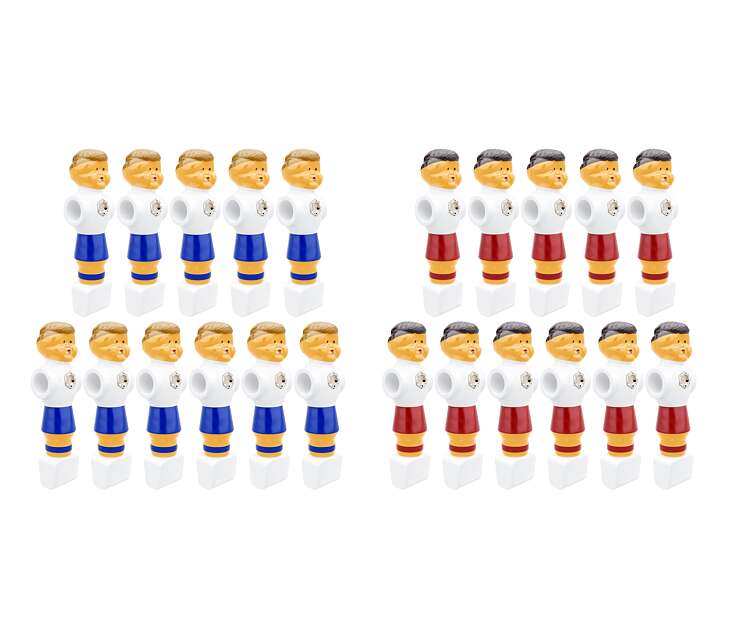 Ein Set besteht aus insgesamt 22 Kickerfiguren: 11 Figuren in Blau und 11 Figuren in Rot. Dies ermöglicht die Ausstattung von zwei kompletten Mannschaften.