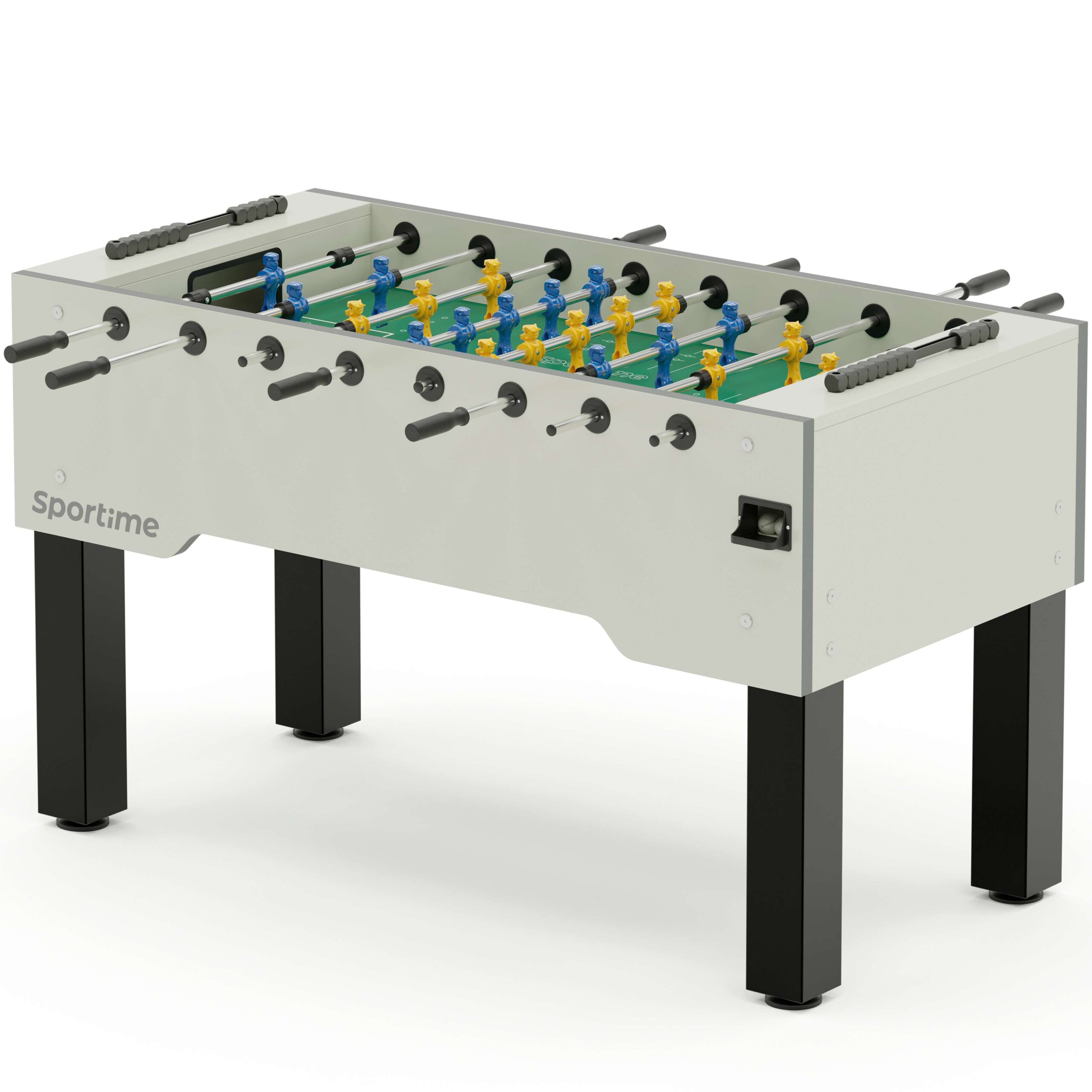 Der Sportime Tischkicker „Match“ ist primär für den Innenbereich konzipiert. UV-Strahlung und Feuchtigkeit können die Materialien beeinträchtigen und die Lebensdauer des Produkts verkürzen. Für den Einsatz im Freien empfehlen wir spezielle Outdoor-Tischkicker, die diesen Bedingungen besser standhalten.