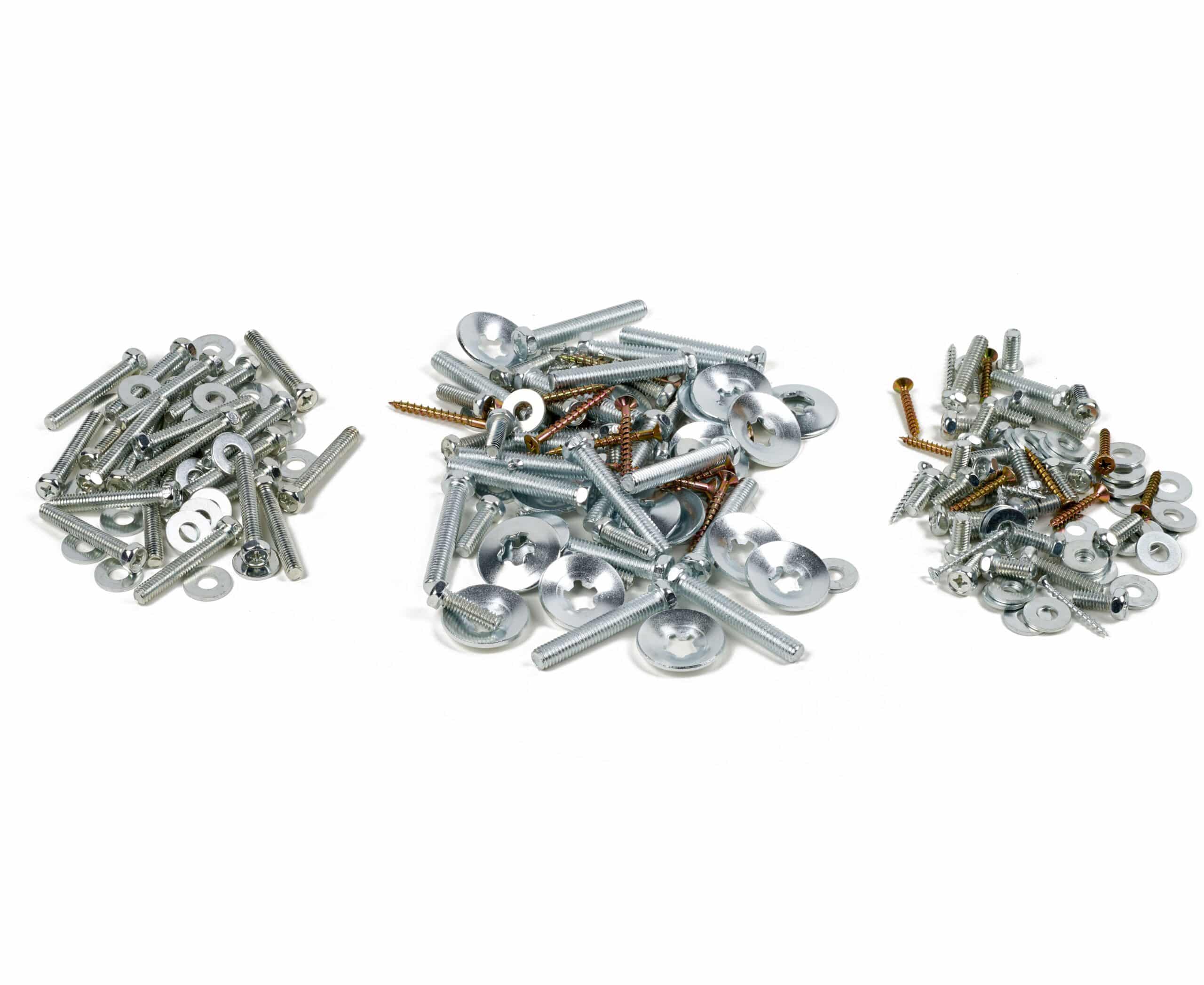 Das Set beinhaltet alle spezifischen Schrauben, Muttern und Unterlegscheiben, die für die fachgerechte Montage eines Stradivari Billardtisches der Serie „Windsor“ benötigt werden. Die genaue Stückzahl und die Dimensionen der einzelnen Komponenten sind auf die Konstruktion dieses Modells abgestimmt.