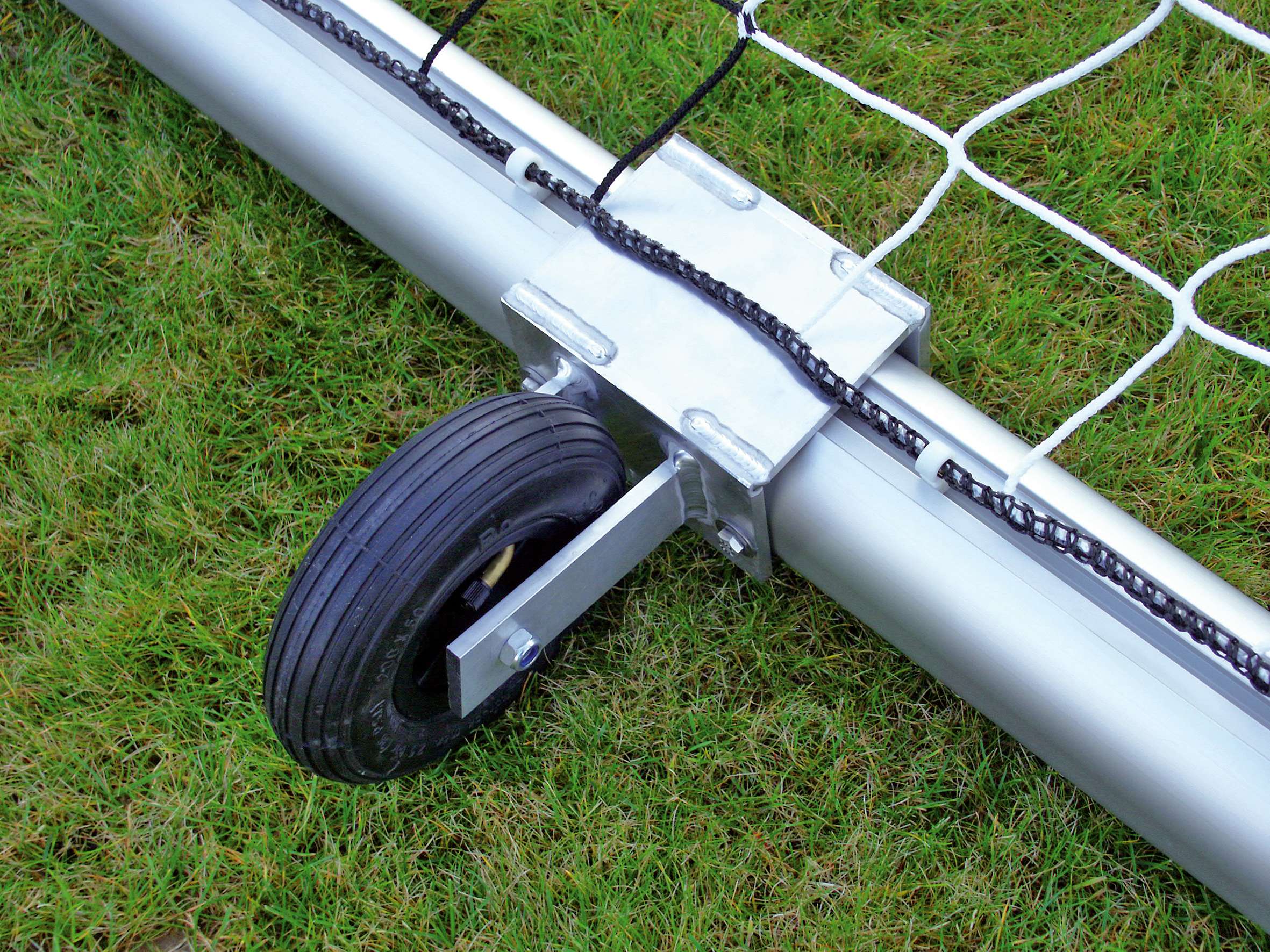 Die genaue maximale Traglast variiert je nach spezifischem Modell und Hersteller. Generell sind diese Transportrollen jedoch für die typischen Gewichte von freistehenden Sporttoren ausgelegt. Für genaue Angaben empfehlen wir, die Produktdetails des jeweiligen Modells zu konsultieren.