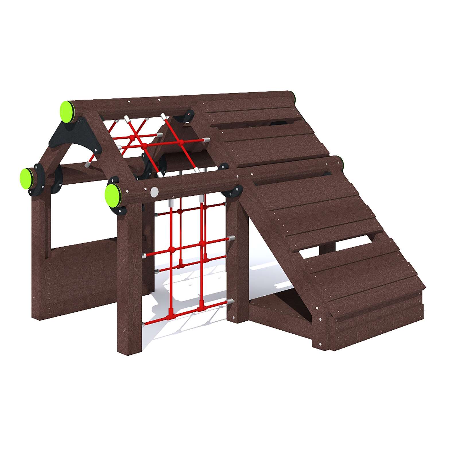 - Fördert körperliche Aktivität: Durch integrierte Kletterelemente wie eine Strickleiter und eine kleine Kletterwand werden Motorik, Koordination und Gleichgewichtssinn spielerisch geschult.
