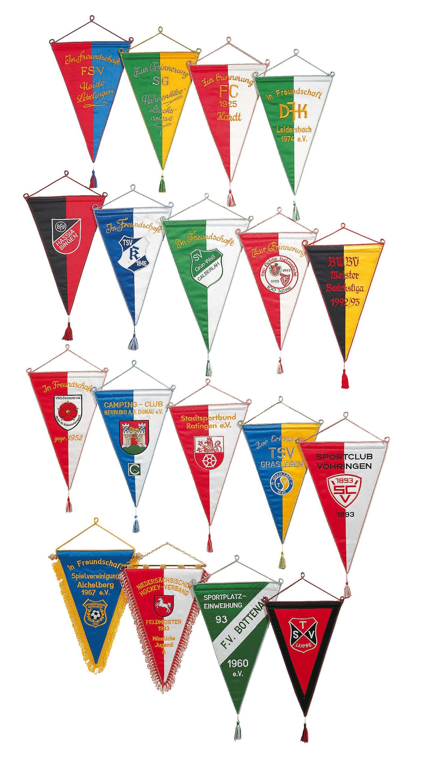 Es steht eine sehr breite Palette an Garnfarben zur Verfügung, die fast alle gängigen Vereins- und Unternehmensfarben abdecken. Wir können auch Sonderfarben nach Pantone oder RAL-Vorgaben verwenden, sofern verfügbar.